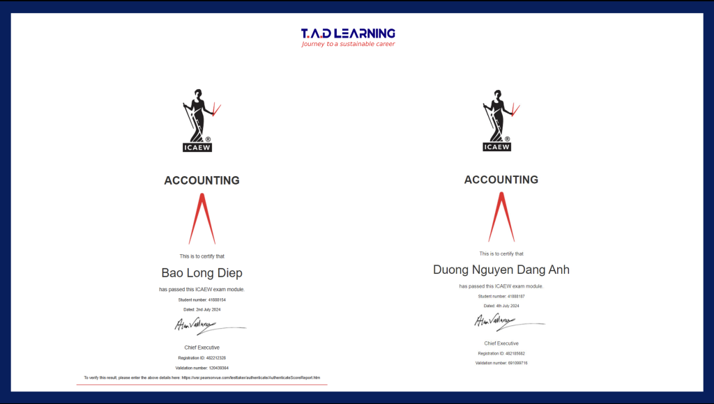 Chúc mừng những sinh viên đầu tiên trong chương trình học bổng 𝐈𝐂𝐀𝐄𝐖 𝐑𝐢𝐬𝐢𝐧𝐠 𝐒𝐭𝐚𝐫 2024 đã chinh phục bài thi CFAB 𝐀𝐜𝐜𝐨𝐮𝐧𝐭𝐢𝐧𝐠. Chúc tất cả các bạn sinh viên tiếp theo đạt chứng chỉ Accounting trong thời gian sớm nhất. Chúng ta cùng chia sẻ niềm vui với hai bạn đầu tiên, đều cùng là sinh viên của FTU CS2, và đều có điểm thi trên 80!